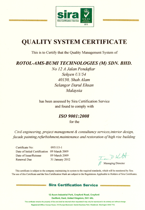 ROTOL-AMS-Bumi Technologies is a G7, PKK Class ‘A’ Bumi Status company which actively represents ROTOL’s products and services including construction, ID and renovation works both in the government and private sector.