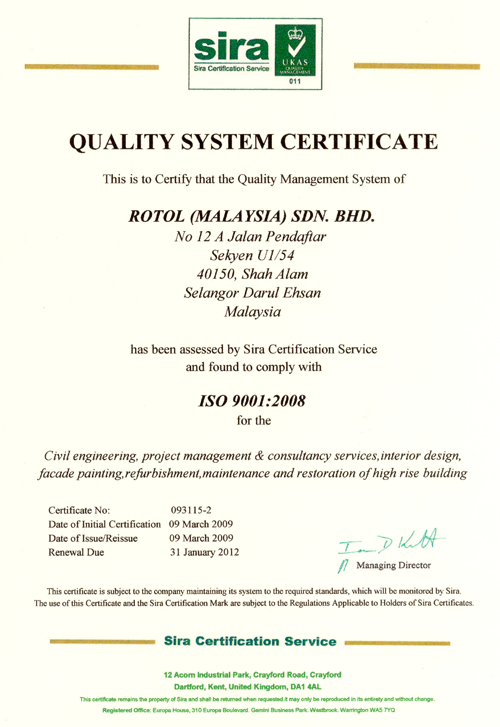 A well- known one-stop leading architectural spray texture, wall & floor coating and painting specialist since 1994, ROTOL (Malaysia) Sdn Bhd offers a minimum of 5-years warranty in every project that is undertaken by the company. Having a long establishment in the market place, we have good ties and strong support from top brands and paint manufacturers. Rotol also develop our own special coatings only to be used for projects with unique and exceptionable conditions.